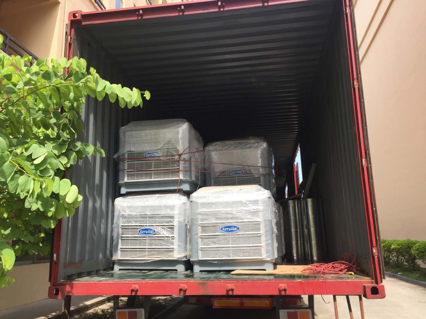 22.5米車廂整整一車科瑞萊工業環保冷風機空調KD18機器整裝待發,謝謝客戶對我們科瑞萊品牌的信任與支持。