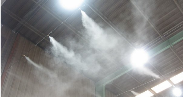 4.噴霧降溫:噴霧降溫的原理也是和水簾一樣的,都是通過水蒸發(fā)吸熱達(dá)到降溫的,不同的,噴霧降溫是直接在廠房內(nèi)安裝管線噴嘴,通過主機(jī)加壓把水運(yùn)輸?shù)礁髦Ч苈罚偻ㄟ^0.1毫米孔徑的高壓霧化噴嘴噴出成霧,霧蒸發(fā)降溫。噴霧降溫優(yōu)點(diǎn):前期成本低,后期成本也很低(一般1000平米的廠房1.5KW的主機(jī)就可以了),降溫幅度大。缺點(diǎn)就是需要通風(fēng)條件好的廠房,密封廠房不適用。